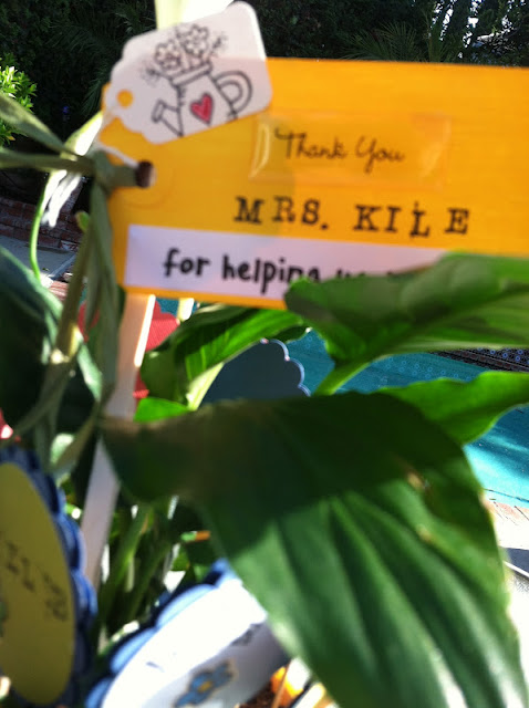 Next, I topped the lid with a large sunflower and a tag stamped "thank you."
