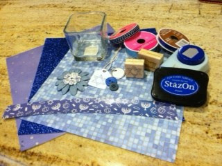 So I decided to alter a mundane wooden serving tray in the new "Chanukah colors." I found bright fuchsia gift wrap in my Chanukah box. It was perfect. I painted the tray with two coats of a dark pink/fuchsia color. I cut a piece of gift wrap to fit snugly inside the tray and adhered it with "the Podge." When dry to the touch, I covered it with another coat of MP. This got me thinking...so I made a tile coaster to match. (When I have time, I will make another one to match.)