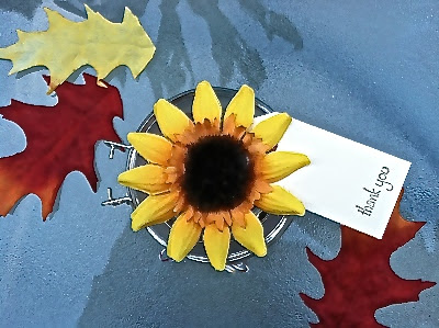 Next, I topped the lid with a large sunflower and a tag stamped "thank you."